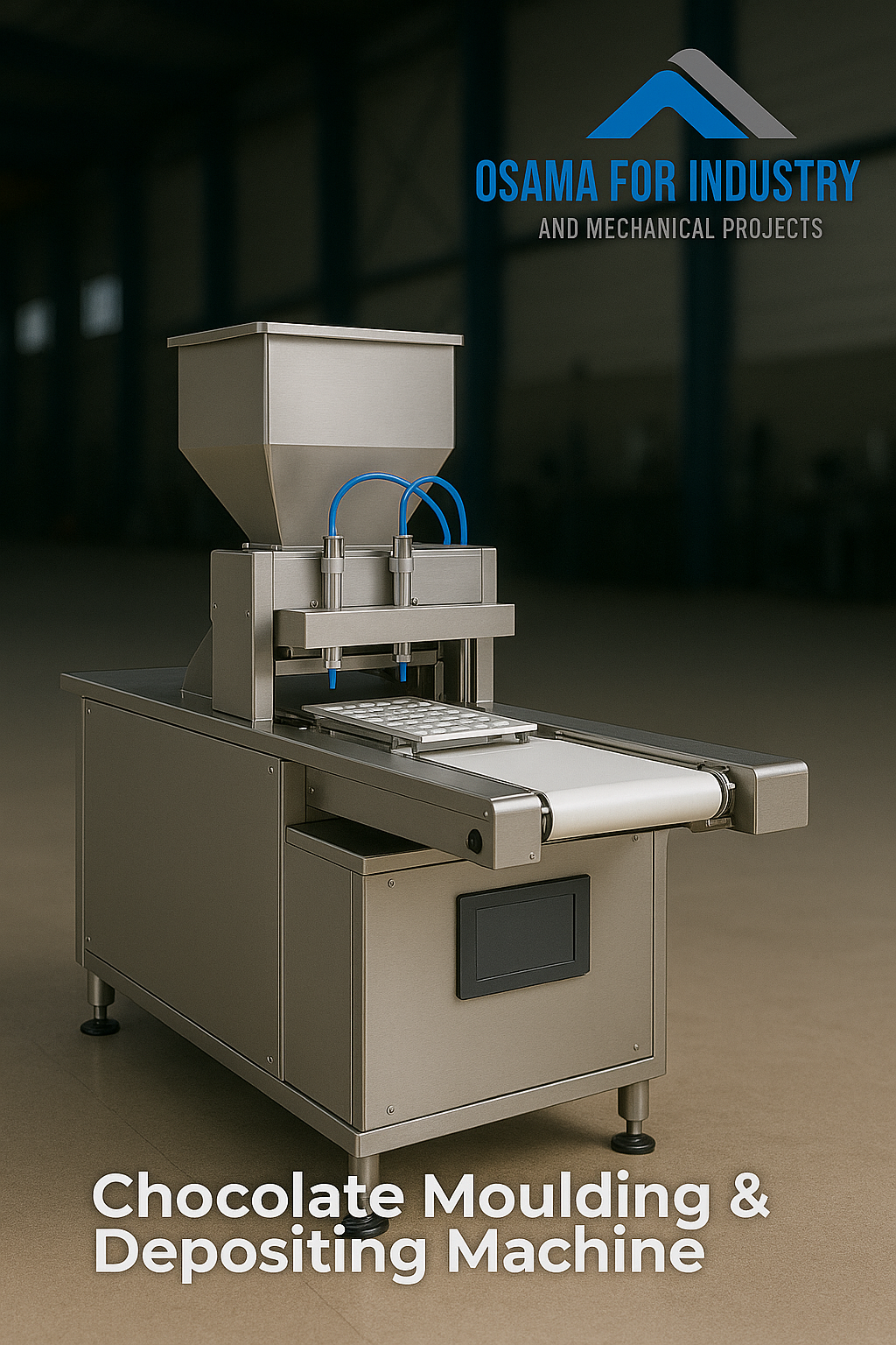 Automated moulding system for depositing chocolate with high accuracy into various mould shapes. Ideal for bars, pralines, balls, and custom chocolate designs.